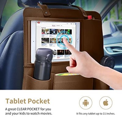 - Great Division - We provided an upgraded storage bag design with a brand new pocket. Transparent window pocket for iPad, tablet computer. It not only has enough storage space, but also keeps your car tidy.