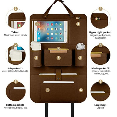 - Convenient Design - With 7 pockets of different sizes, you can keep your car clean and tidy. You can put tablet, cellphone, bottle, toy, magazine etc.